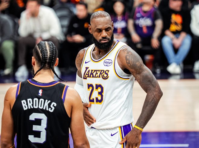 无球情况下,布鲁克斯故意推搡詹姆斯,吃到技犯!詹姆斯和艾顿连续上分,布克和马威强攻回应,中段詹姆斯运球突破直接脱手,好在东契奇和艾顿手感不错,海斯也接连暴扣!不过后半段太阳依靠邓恩和奥尼尔下三分雨,老詹连续被抢断,包括运球夹带,这让太阳频繁打出反击,第一节湖人31-36太阳。进入第二节,奥尼尔和伊戈达罗内外开花,艾顿手感很好,詹姆斯又险些失误,中段老詹联合东契奇打停太阳,奥尼尔三分不丢,布鲁克斯火上浇油!后半段詹姆斯和布鲁克斯又出现冲突,最终确认詹姆斯普通犯规。