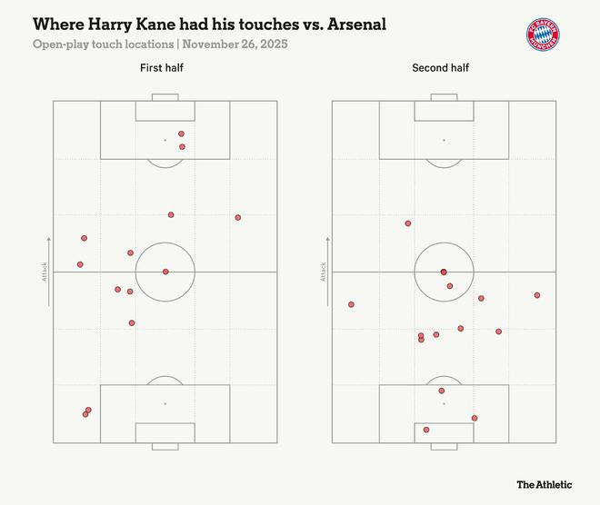 凯恩在进攻端参与度低,反映的是阿森纳在无球状态下计划执行得当,而非专门针对他个人的特定战术。
